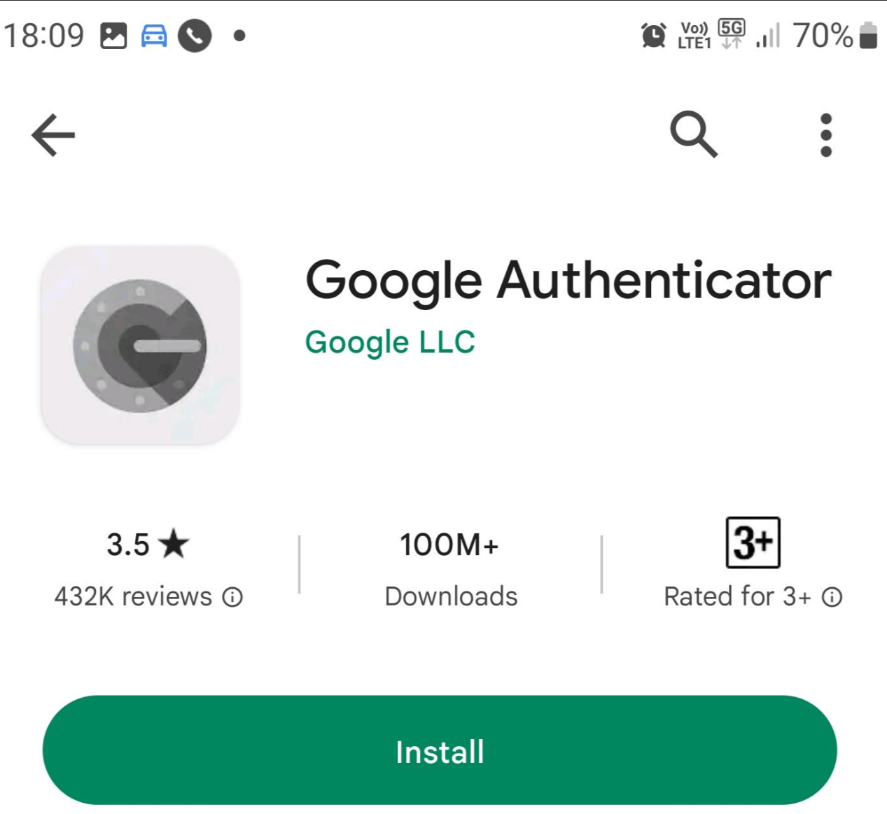 Open the Google Play store and search for your chosen authenticator application.
