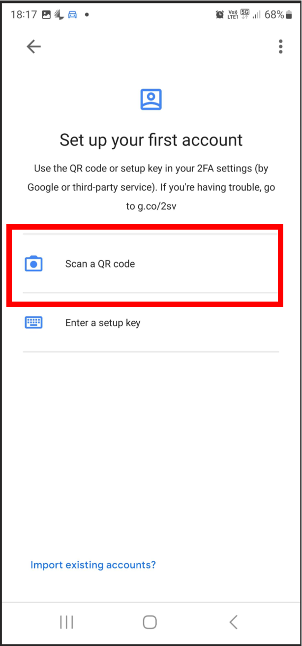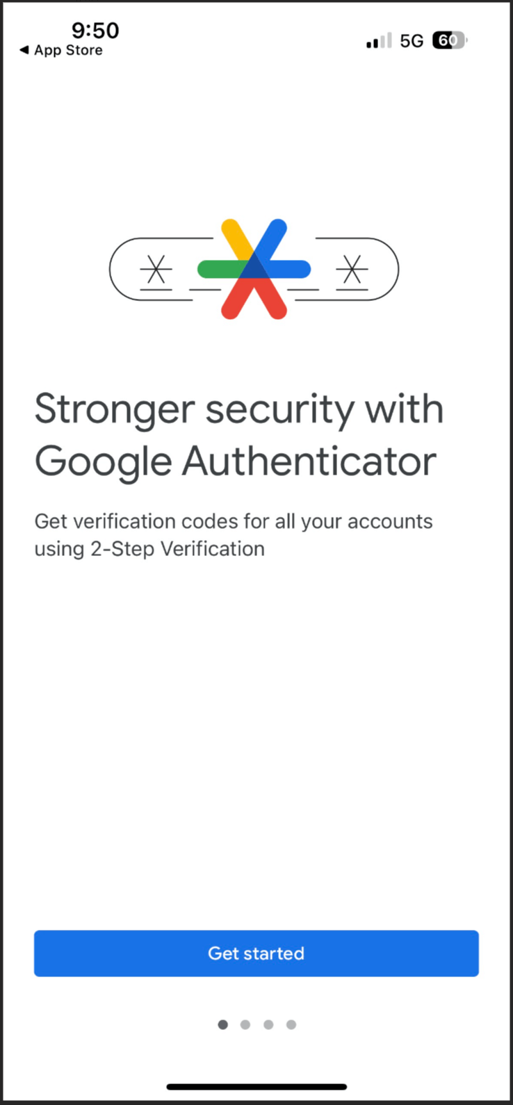 Open Google Authenticator and click "Get Started".